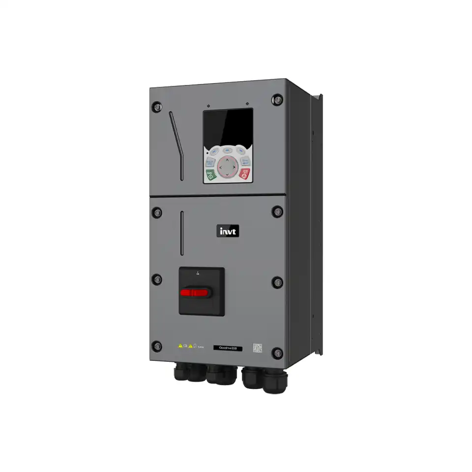 Alle Modelle der GD350-Serie in der IP55-Ausführung sind serienmäßig mit einem integrierten Hauptschalter ausgestattet – ideal für die direkte Wandmontage ohne Schaltschrank. Das reduziert Installationsaufwand, erhöht die Betriebssicherheit und spart erheblich Kosten.