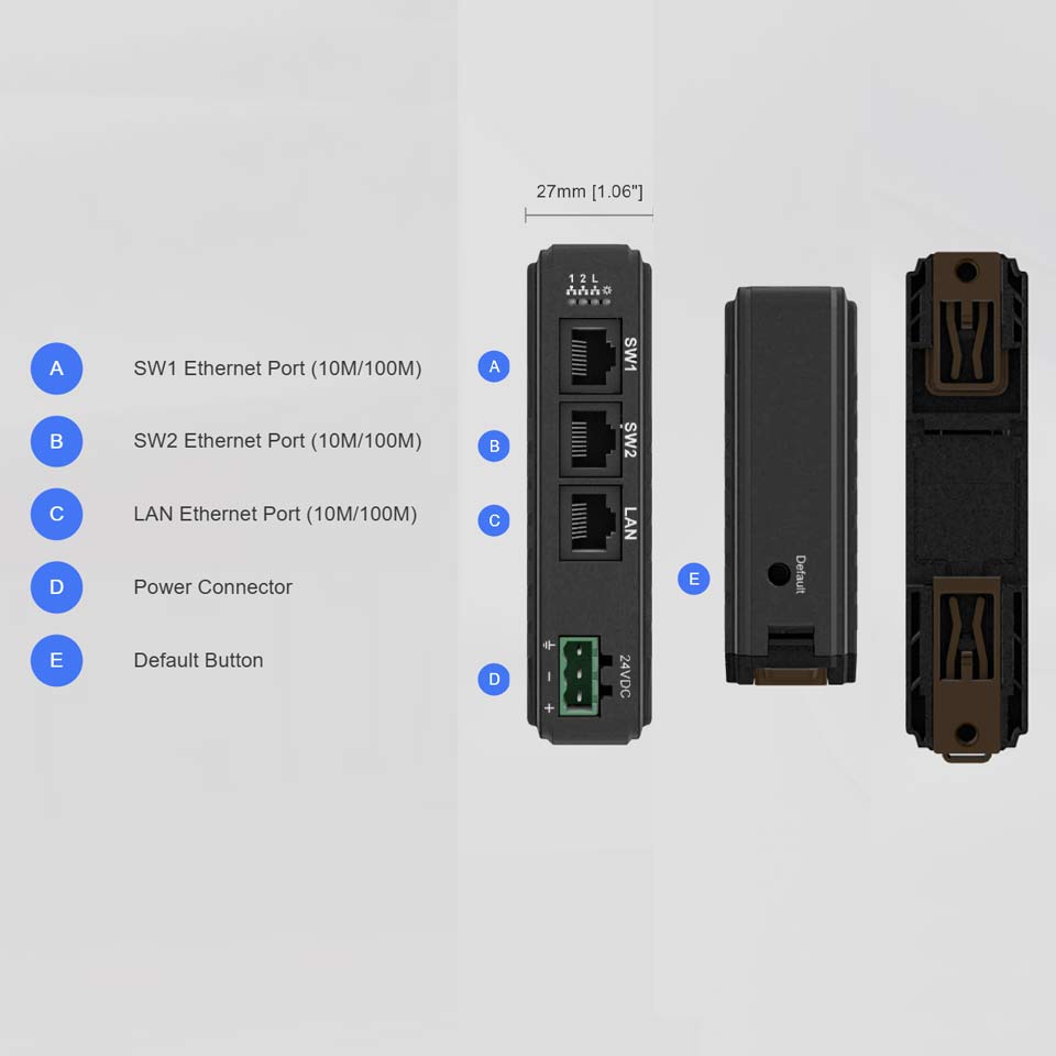 SW1, SW2:10/100 Base-T x1 (2 port Ethernet switch)