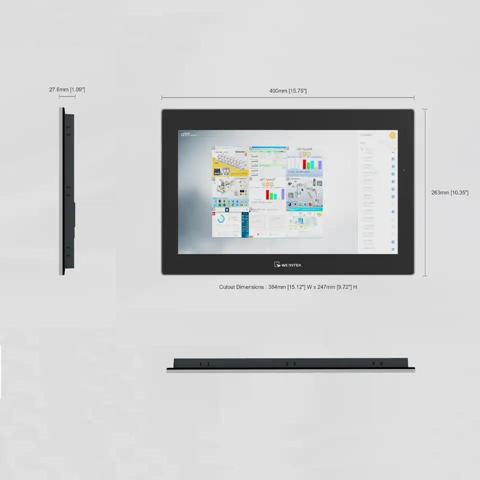 Das cMT3162XP (iV) vereint klare 15,6″-Visualisierung, robuste IP66/NEMA 4X-Front und die cMT Viewer-Stärke: bis zu 6 HMIs gleichzeitig sehen und bedienen.