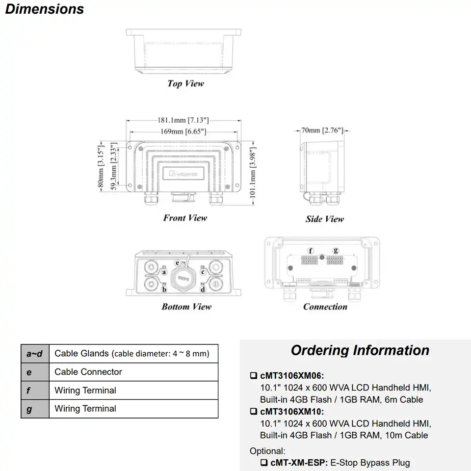 Weintek cMT-XMBS Standard-Anschlussbox (IP66) – Frontmontage am Schaltschrank, für cMT3106XM-06 & cMT3106XM-10