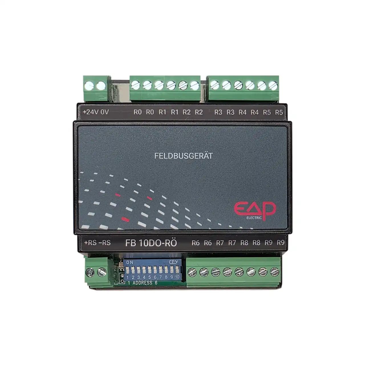 - Einfache Inbetriebnahme: Adressierung und Baudrate per DIP-Schalter